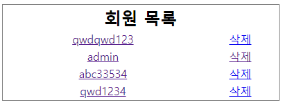 위에서 관리자 모드를 클릭하게되면 회원목록이 실행되어서 표현이 된다.
