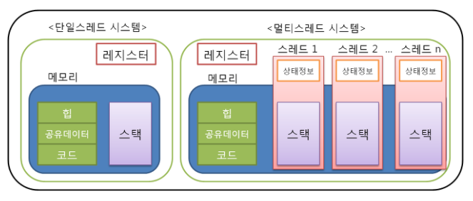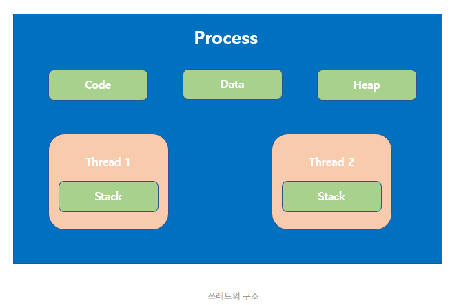 - 스레드는 프로세스 내에서 Code, Data, Heap 영역을 공유한다.
