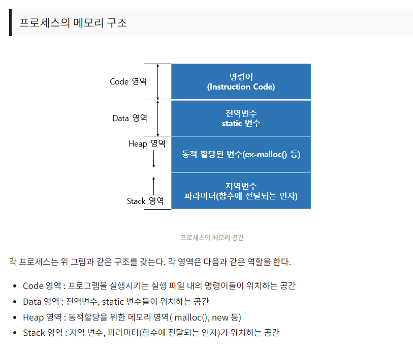 - 사용자가 애플리케이션을 실행하면 운영체제로부터 실행에 필요한 메모리를 할당받아 애플리케이션의 코드를 실행한 다.