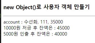 document.write("5000원 인출 후 잔액은 : "+account.inquiry()+"<br>");