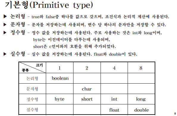 - 정수형: byte, short, int, long